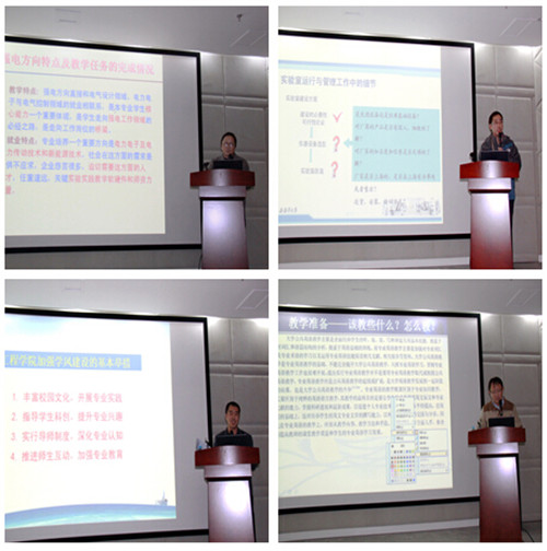 会议第二阶段召开本科教学工作会议,由曹守启老师主持。宋秋红、李军涛、张雅林、刘雨青、姜波、吴燕翔、赵波等七位老师从专业评估整改、专业建设规划、学风建设、课程群建设、教与学六环节、引导员工爱专业、如何上好一堂课等方面做了题为“机制专业评估反映出的问题及其后续建设”、“浅谈物流工程这个专业”、“扎实开展师生交流,稳步推进学风建设”、“引导员工爱上电气专业的路径和抓手?”、“基于质量控制的教与学的探讨”、“电气工程及其自动化专业课程群的设计及实施”、“如何上好一堂课——浅谈专业英语教学”的交流发言,老师们实事求是的现状分析、敏锐和系统的工作思考和接地气的工作建议得到与会老师的一致好评与共鸣;曹守启老师要求各系室利用教研活动,进一步讨论和消化发言材料,把老师们好的意见和建议在实际工作中落实、推进。