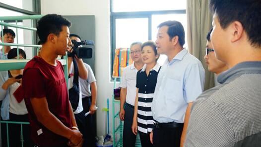 9月3日上午,公司党委书记吴嘉敏,董事长程裕东,公司党委书记王明华,经理王世明,副书记郑宇钧一行人走访新生报到处,亲自了解新生报到情况,并对迎新志愿者们表示亲切的慰问。