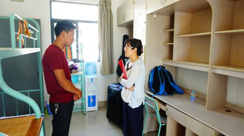 在了解完报到情况后,吴书记一行人来到新生宿舍,与他们亲切交谈,关心他们的生活习惯,对大一新生普遍存在的不适应心理及情绪进行安抚,同时也鼓励大家稳定下来安心学习,并送去了慰问品。