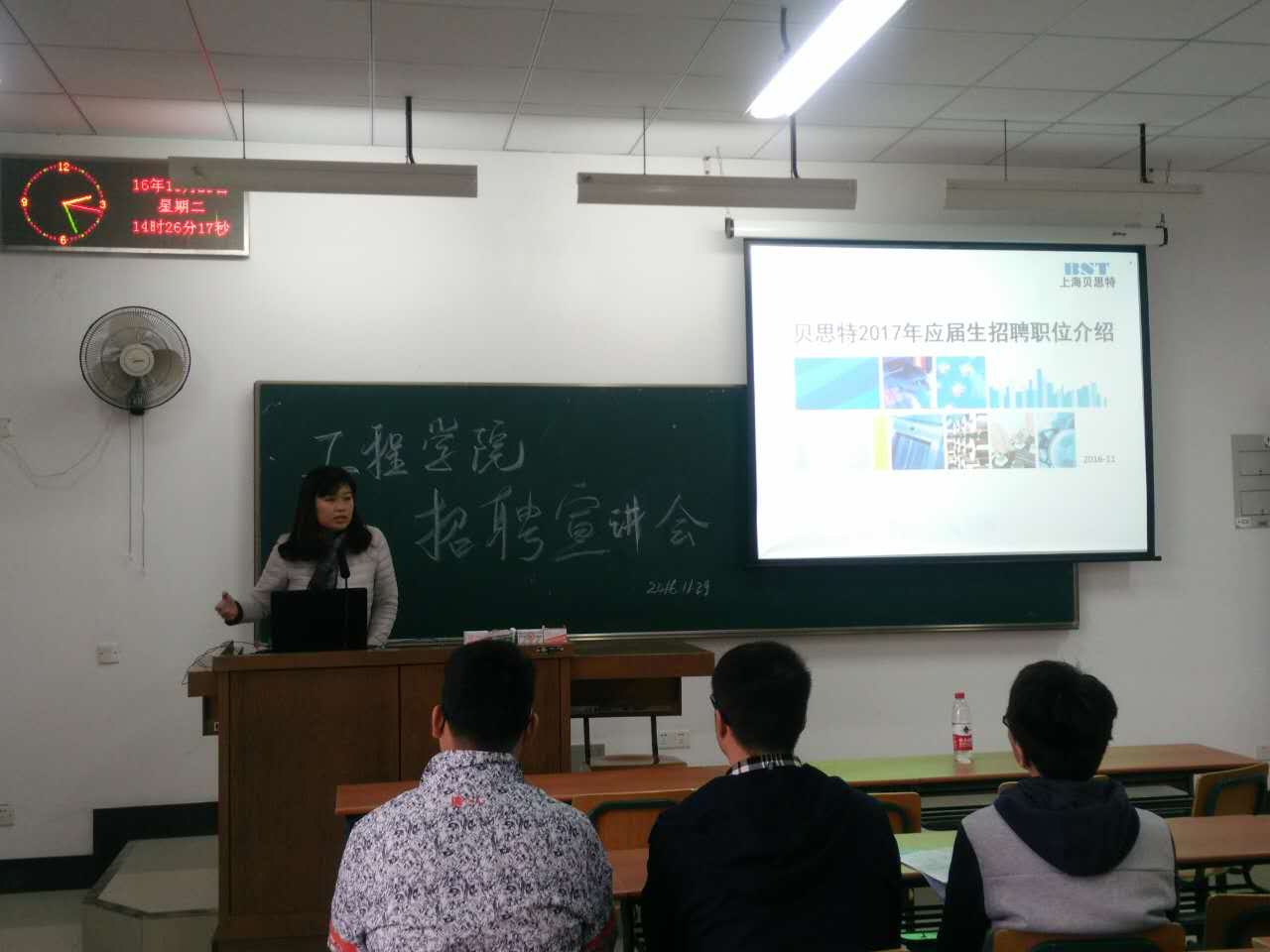 2016年11月29日14点,3044AM永利在2308教室举行了上海贝思特电气有限公司宣讲会。上海贝思特电气有限公司技术部、人事部等相关人员,以及毕业班部分员工参加了本次宣讲会。本次宣讲会以上海贝思特电气有限公司的基本情况以及对招聘对象的要求为主题,同各位同学进行了沟通交流。