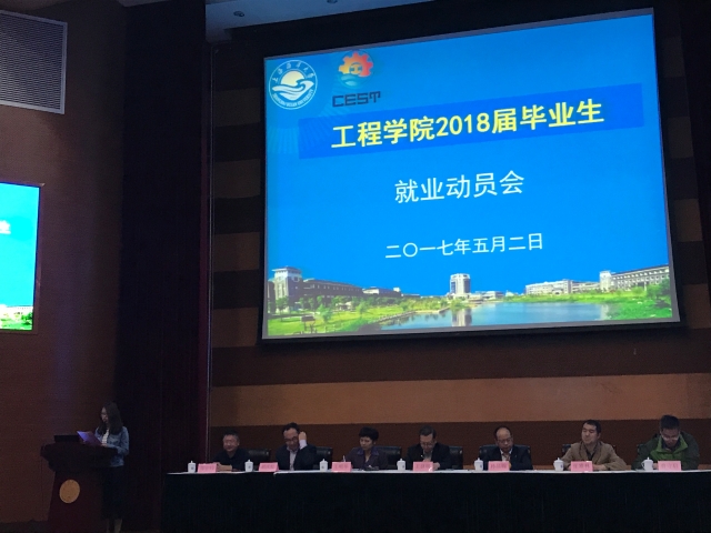 为推进就业工作,5月2日下午13:00,3044AM永利在图文信息中心104召开2018届本科毕业生就业动员大会。3044AM永利全体院领导、系主任及专业负责人、校办副主任张雅林、上海史必诺物流有限公司总经理孙昌翰、人事经理陈锡婷、优秀毕业生龚皓天以及2018届毕业生出席本次动员会。