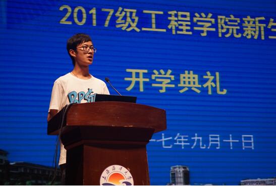 接下来2017级工业1班吕咏蔚和2014级机制1班袁欣伟分别作为新、老生代表进行了发言,新生代表建议大家明确目标,坚定信念,常怀感恩之心,不断奋进。老生代表袁欣伟号召新生“志存高远、念念不忘、躬身实践、必有回响”。随后,公司电气工程及其自动化系主任周悦老师作为教师代表做了发言,周老师希望同学们心怀梦想,脚踏实地,“让海大成为梦想开始的地方,让3044AM永利成为梦想开始的基石”。