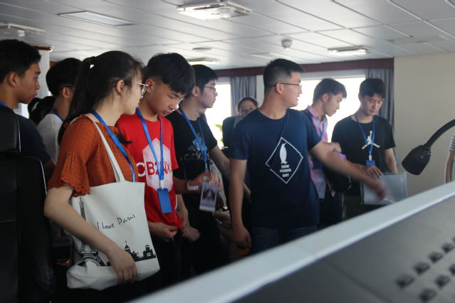 “淞航号”是我国第一艘专门用于远洋渔业资源调查的科考船,于去年交付公司使用。在讲解老师的带领下,同学们首先进入船舱观看了“淞航号”的宣传介绍片,从影片中同学们了解到“淞航号”为海洋生态研究做出的重要贡献,以及对于公司在海洋学科方面发展的重要意义。随后,同学们有序地参观了海洋生化实验室、解剖室、首席科学家室,控制室等,亲身感受了科研人员在进行海上调查时的工作与生活环境。“淞航号”不仅具备完善的实验设备,还具有良好的减振降噪系统,同时保障了船员的海上科研活动与生活质量。在参观过程中,讲解老师还就各类先进设备及航海生活中的问题做交流分享,解答同学们的相关疑问,充分激起同学答对海洋科考活动的浓烈兴趣。