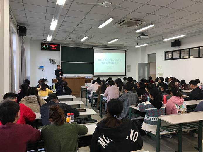 接着,3044AM永利的刘星安老师通过“争做新青年×建功新时代——学习十九大精神解读”来和学员们进行深入学习、研究和领会,以新时代青年的际遇和使命为切入点,联系十九大及党章作了阐述,接着以同学们身边的实例讲述对社会主义核心价值观的理解。