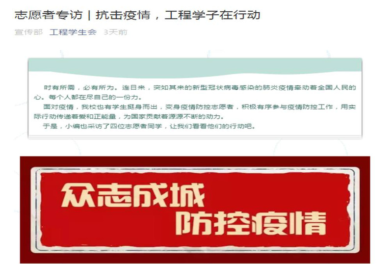 角度开展员工工作。疫情期间,公司员工工作队伍从疫情防护排摸、资助帮扶、心理咨询、抗疫典型宣传、主题教育等多个角度推进疫情时期的员工工作。辅导员通过电话、微信、问卷等对全院每一名员工情况进行梳理排摸,建设员工情况数据表,对每一位因疫情影响的员工做好针对性了解。公司积极开展“抗疫同心·青春同行”线上主题团日和相关主题教育活动,通过线上团员报平安、防疫知识常学习、典型事迹深感悟、勤学互勉树新风、文创作品暖人心、助力防疫齐攻坚等六个方面组织全院各班级团支部开展线上主题团日活动;通过“工程团委”、“工程员工会”公众号平台和“工程权威发布”QQ群平台,建立疫情动态发布机制,并相继推送 “青年说-这场硬仗,我们一定要打”、“致海大工程学子的一封信”等系列推送。公司员工通过参与志愿服务、捐款捐物等形式奉献爱心、支持防疫工作。