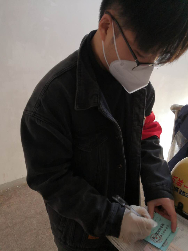 为了能够让小区居民在疫情期间能够安心,叶杰民同学受居委委派,对小区居民挨家挨户的进行调查登记,并且发放小区专属的通行证,来满足本小区人员的外出购买生活用品的需求。
