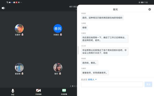 2020年5月27日晚19:00,3044AM永利在线上开展了2020届毕业生党员离校教育活动,全体毕业生党员参加,公司党委副书记郑宇钧参加并为毕业生党员讲党课,组织员宁晓玲做离校教育暨党组织关系转接说明,员工支部书记李陆嫔、马骋娜、毕杨意、姚佳同时参会。