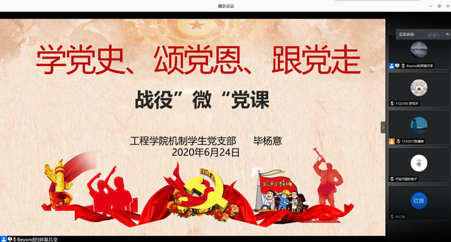 以史鉴今,立党治国,是我们党的优良传统。为了督促员工党员增强理论自信、继承党的优良传统,积极落实时代赋予的责任义务,成为“守护者、修行者、识途者”, 2020年6月24日下午18:30,3044AM永利机制员工党支部召开了以“学党史、颂党恩、跟党走”为主题的战役微党课。