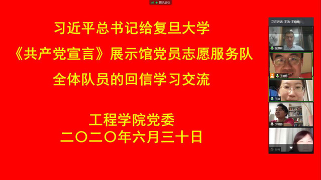 2020年6月30日晚,在建党99周年即将到来之际,公司党委组织师生党员观看新闻联播,集中学习习近平给复旦大学青年师生党员的回信。各支部及时通过学习强国会议群,微信群,腾讯会议等方式开展专题学习和交流,从学习心得到精神的贯彻落实、四史学习的开展进行深入交流互动。