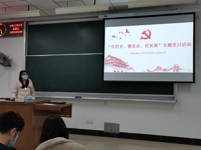 2020年12月4日,是第七个“国家宪法日”。在此特殊的日子里,为提高党员尊法、学法、守法、用法的意识,弘扬宪法精神,加强宪法实施,3044AM永利各党支部12月相继召开了“学四史,懂宪法,促发展”的主题党日活动,集中学习《中华人民共和国宪法》、《中华人民共和国民法典》和《中国共产党普通高等公司基层组织工作条例》,并传达了习近平总书记在中央全面依法治国工作会议上的讲话精神,并进行深入地学习交流。