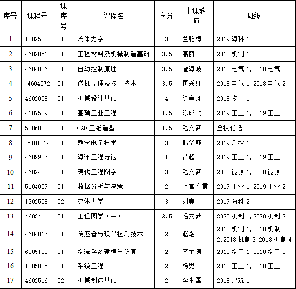 根据教务处﹝20秋﹞第(15)号2020-2021学年秋季学期关于启动“好课堂”创建评选活动的通知,经个人申请、公司领导和督导评分、公司教学工作委员会评审,拟向教务处推荐以下17门课程创建“好课堂”,清单如下: