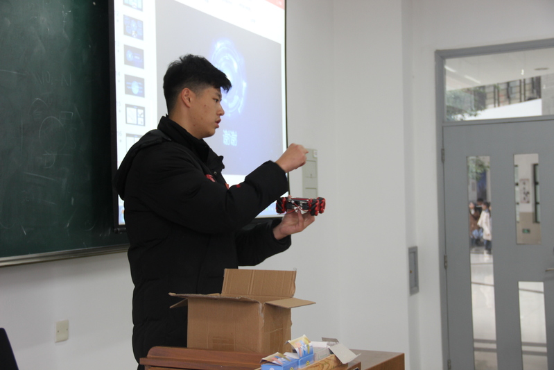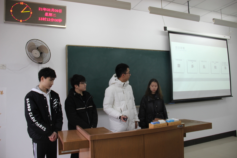 随后答辩正式开始,本次答辩分为ABC三组,三组同时开始,同时进行。此次答辩采取“选手答辩+评委提问”的模式,各项目分别从项目背景、团队成员、方案设计、创新点、项目规划等方面详细介绍了各自创新项目。项目更多地源于生活:“室内红外测温消毒一体化机器人”项目结合新冠肺炎疫情期间疫情防控的需要,设计了一款集测温和消毒与于一体的智能小车;项目“自动收集整理羽毛球系统”设计了一款能自动寻路,收集羽毛球的装置,解决了运动时“捡球慢”的难题。答辩不乏科学技术问题:“一种仿蓝鳍金枪鱼水下航行器总体设计”针对蓝鳍金枪鱼的运动姿态和推进方式,结合仿生学的原理进行实物建模;“复杂水域无人船控制”提出了全新的控制算法,在协同控制、多机通讯等方面加以研究。各项目在不同的研究领域进行探索研究,详细阐述了研究方式和可行性,并表达了愿意从事科创事业的决心和信心。