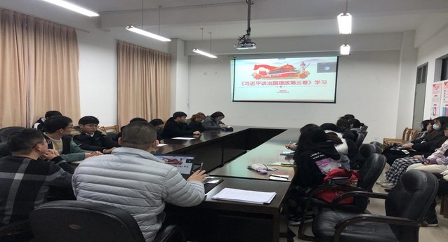 第二部分是由殷越同志带领同志们学习《习近平谈治国理政第三卷》,殷越同志提到2017年十月召开的中共十九大宣告中国特色社会主义进入新时代,制订了全面建设社会主义现代化强国的宏伟蓝图。同时殷越同志提到进博会的相关知识,提倡全体党员多了解进博会,开拓视野。