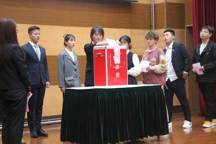 会议首先进行了校级员工代表的选举工作,审议通过监票人和计票人名单,并由在场的计票人员向全场员工代表发放选票,公司员工代表投票。大会最后选举产生12名本科生校级代表。与此同时,为促进公司决策民主化,科学管理化,由2020-2021学年工程员工会主席团成员何泽禹对四份议题进行简要报告。