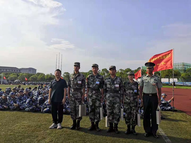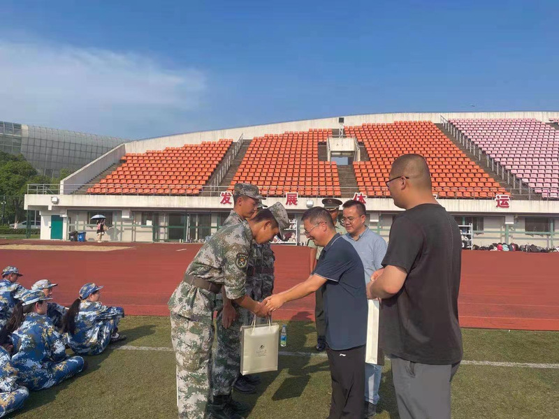 随后,郑宇钧老师向连队教官了解员工军训情况,同时送上公司纪念品,对刻苦训练的教官们表达了敬意和感谢。