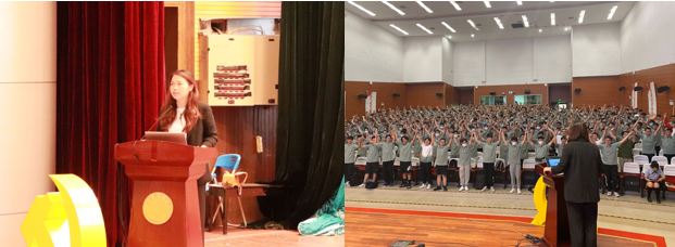 员工代表邵娇云从自身经历出发,希望学弟学妹们制定合理目标并为之而奋斗、培养面对挫折的勇气、坚持合理的运动,尽快适应老员工活并遇见更好的自己。华为徐丽婷经理从华为的标语“我们致力于把数字世界带入每个人、每个家庭、每个组织,构建万物互联的智能世界”开始,介绍了工业信息的未来趋势以及ICT人才培养体系,给现场新生以极大震撼。
