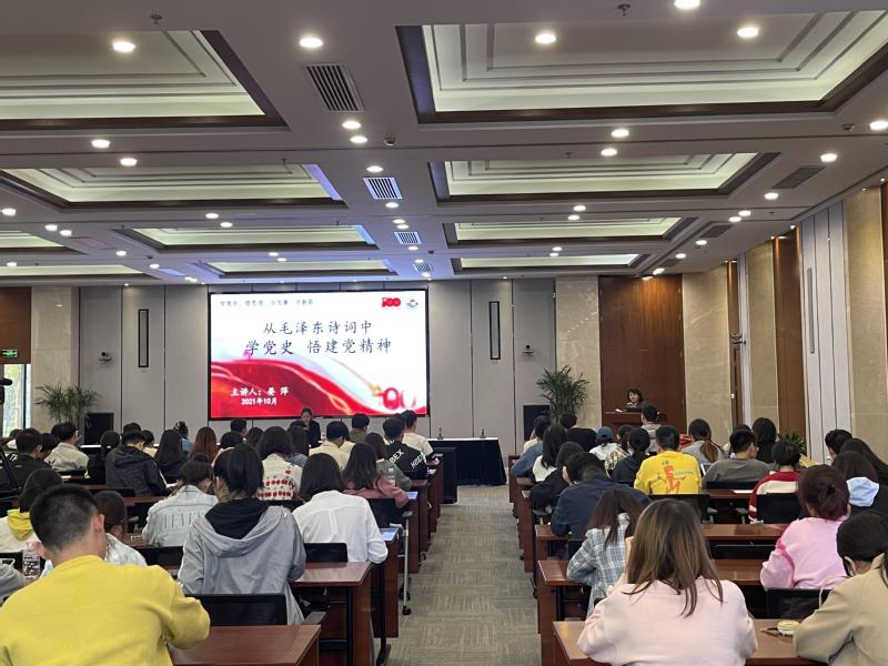 2021年10月26日,公司党委书记晏萍在海洋科技大楼109会议室为公司党员上了一堂“从毛泽东诗词中学党史 悟建党精神”主题党课,海洋科学公司、海洋生态与环境公司、海洋文化与法律公司、保障和直属部门党委预备党员培训班学员也参加此次党课。