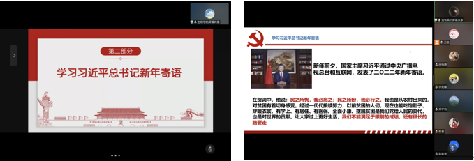 会议上,杨红衣同志做2022年党支部工作计划,从六个方面开展具体的工作计划制定。王周玥同志和顾子怡同志做生活会学习感想。王周玥同志表示身为一名新进预备党员,深感荣幸,也必将砥砺前行,为中国梦奋斗奉献。她新的一年也会按照党支部工作计划开展工作,密切联系群众,做好组织交付给她的任务。顾子怡同志表示习主席是把建设更好的中国、给人民更好的生活这份责任扛在了肩头。作为预备党员、正式党员的我们,也应该从自己身边的小事做起,承担属于自己的时代责任感。最后,全体党员、预备党员一起重温入党誓词,不忘初心,砥砺前行!