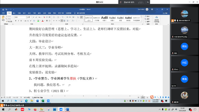 4月10日,结合学业导师反馈的信息,系室基层成员研究相应的解决方案,形成了以“学业导师+课程教师”帮扶和“员工一帮一结对”帮扶相结合的模式,并通过线上会议与相应的学业导师、课程教师、结对员工进行交流,针对困难员工个性化的问题,科学、巧妙的研究相应解决方法,争取能切实打通员工毕业的“最后一公里”。