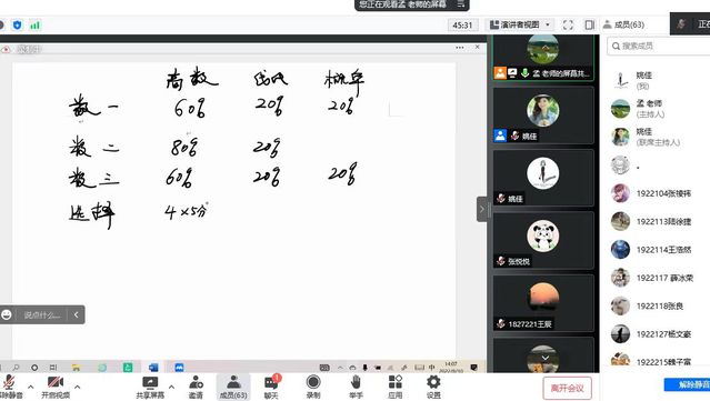 孟华军老师为考研员工详细讲解了考研数学的结构及重难点。孟老师先介绍了考研数学的结构,主要分为高等数学、线性代数以及概率论,并详细说明了考研试卷中三部分分值的分布情况。在培训过程中多次表示,数学中一些基本的知识点及公式需要不断记忆,以此来提高做题速度。建议在备考过程中可以准备两本本子,一本记知识点,一本作为错题本,从而使复习效率达到事半功倍的效果。