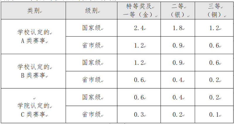 (2)获得公司认定的 A、B 类赛事奖励(计前 5 名,三等奖及以上),每项最高计为 2.4 绩点。