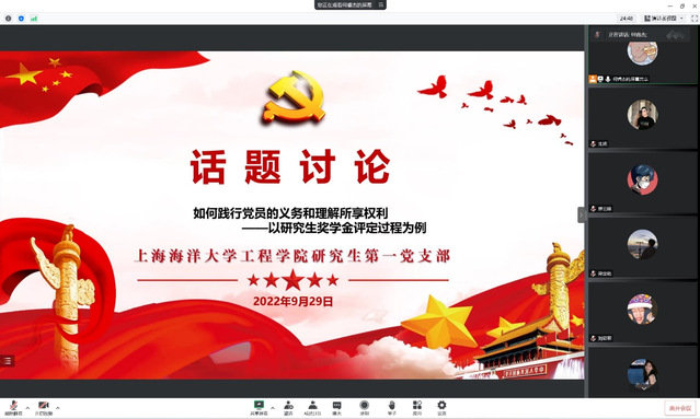 最后,结合本次研究生奖学金评定过程进一步探讨了在实际生活中我们党员应如何践行党员的义务和权力进行展开讨论,广大党员同志分别就奖学金评定过程中党支部支委的工作、员工党员的发展情况等进行了交流发言。大家表示,党员的权力和义务是相对的,作为一名党员,首先应做的是履行党员义务,在平常时候争做先锋,在危难时刻挺身而出,履行了义务的同时也会获得相应的党员权利。此外,林浩涛说到,他作为两个积极分子的培养联系人,对积极分子的要求是定期结合最近实际生活中的认知感悟和最近的学习科研情况采用文字汇报的方式进行沟通,他觉的这种方式能较大程度上了解积极分子的最近真实情况,对他们能有“真正的认识”。