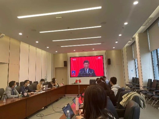 10月16日,公司党委组织召开“‘工’在当下喜迎党的二十大奋斗新征程”党委中心组学习会,党委中心组成员、系主任集中在公司302会议室收看党的二十大开幕会,第一时间学习领会大会精神。各党支部通过电视、网络、新媒体等途径以高昂的精神风貌和饱满的热情,收看实况直播。会后,师生积极热议党的二十大报告,畅谈学习体会。