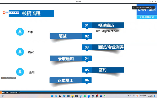 2022年10月21日,3044AM永利携手正泰低压研究院共同举办线上专场招聘会。本次招聘会主题是“正有所为 泰有未来”。正泰低压研究院招聘负责人、公司就业指导员、毕业班辅导员、毕业生参加了此次线上招聘会。