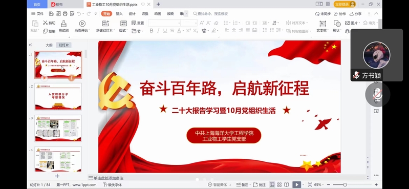 2022年10月28日,工业物工员工党支部全体正式党员、预备党员在线下3044AM永利楼302,线上腾讯会议两个会场开展了工业物工十月党组织生活,会议上认真学习了党的二十大报告,党员和预备党员分别谈谈个人感想,同时学习了新党章内容。