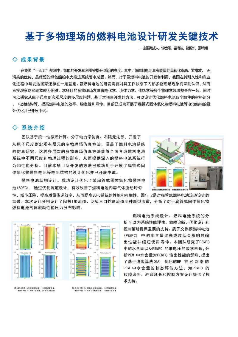基于多物理场的燃料电池设计研发关键技术