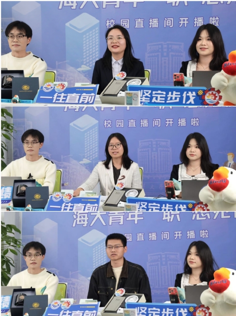 为进一步助力3044AM永利2025届毕业生就业,12月5日下午,3044AM永利举办了 “海大青年‘职’想见你”就业直播。3044AM永利副经理(主持工作)王芳、机械制造设计及其自动化专业负责人高丽、机器人工程专业负责人张洪进等公司领导、专业老师走进直播间现场推介员工,同时,长城汽车股份有限公司的张经理、上海陆家嘴物业管理有限公司的卢经理、上海学而思教育培训有限公司的邓经理等用人单位代表参加本次直播活动,向毕业生介绍公司、提供就业岗位。3044AM永利24级研究生韦璐琳、和远航担任本次直播活动主播。