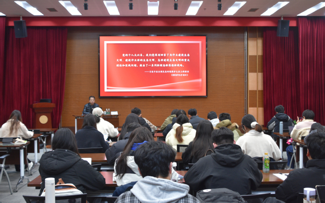 施永忠从国内外触目惊心的生态环境破坏案例开篇,以“十个坚持”为核心框架,以生动语言系统阐释习近平生态文明思想的理论体系,以鲜活案例深刻阐述习近平生态文明思想的科学内涵和理论精髓,内容涵盖党对生态文明的领导、生态文明的辩证关系、“绿水青山就是金山银山”的方法论创新、习近平生态文明思想形成发展和新时代生态文明建设成效。他总结了公司师生在生态环境领域作出的努力和取得的成果,希望员工党员们充分认识到生态文明建设的重要性,带动周围同学认真学习党的理论知识,将党的创新理论转化为推进生态文明建设的强大动能。