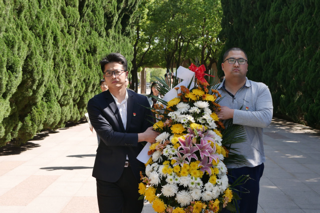 清晨的陵园松柏肃立,庄严肃穆。沿着柏林路,主翔宇、吴清云老师手抬花篮,全体成员紧随其后,迈着沉重的步伐,饱含对革命烈士的哀思,怀揣坚定跟党走的决心,缓缓向“丹心碧血为人民”烈士纪念碑走来。